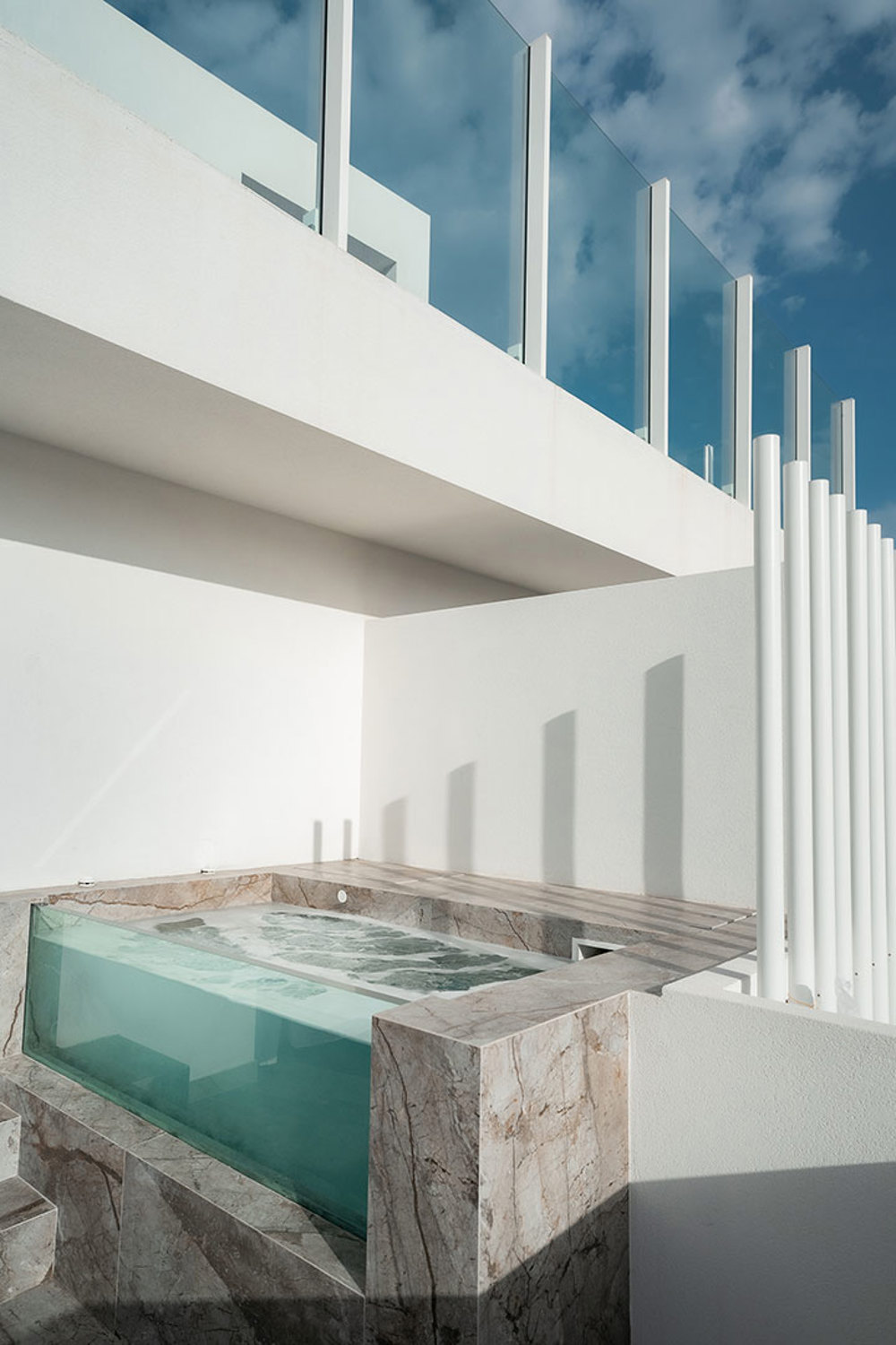 Our Junior Suites with Plunge Pool, offering approximately 35 square meters of space, are designed for ultimate serenity and ease. Situated on the 4th floor, these suites feature a private balcony with a heated hot tub and plush seating, providing a peaceful retreat. Ideal for extended stays or special occasions, these suites ensure a relaxing and enjoyable experience.